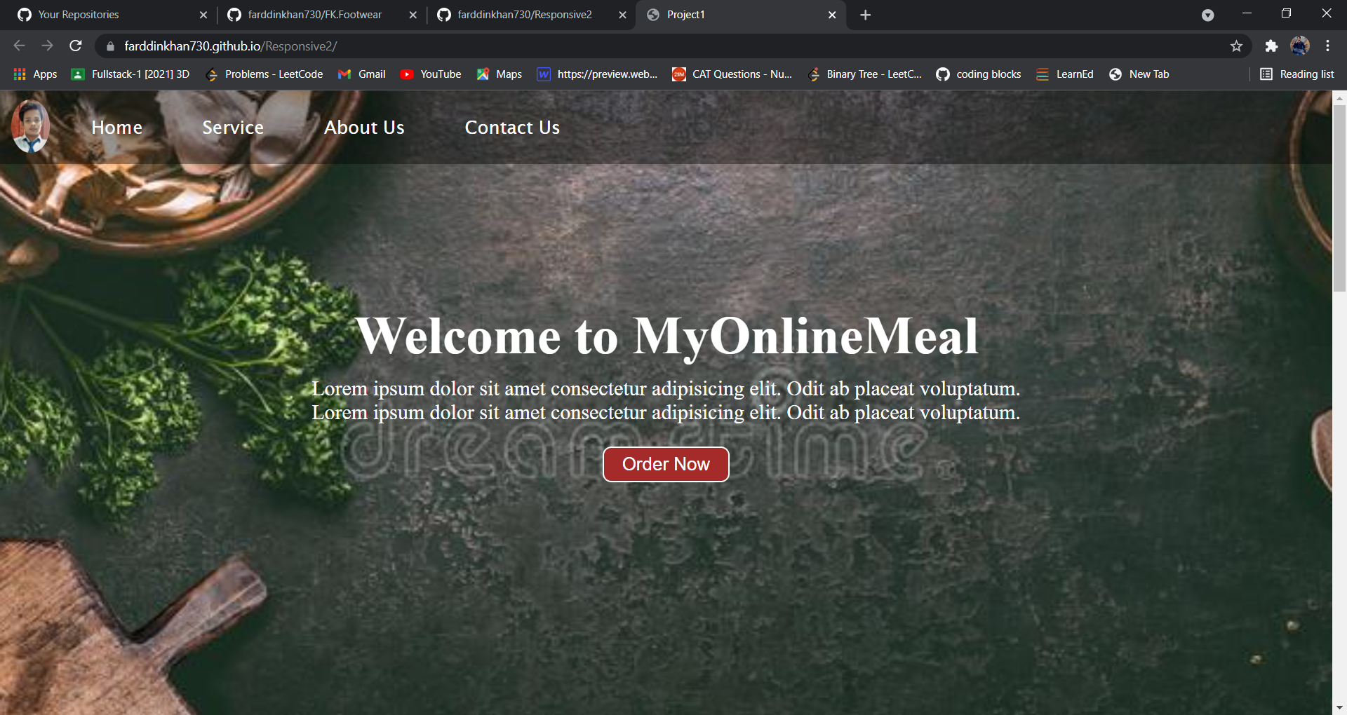 This Website helps you in ordering your favorite food made using HTML, CSS & JavaScript